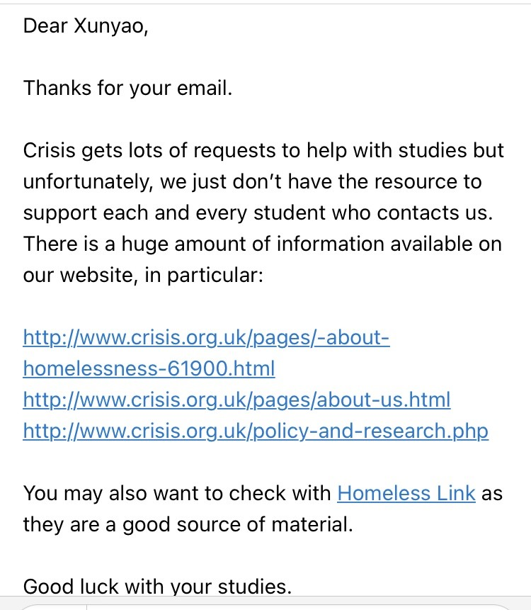 Currently, I am doing a research project on homelessness people in Islington, London.Homelessness problem in the UK really intrigued me and I have great passion to look into this social issue.