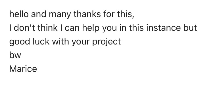 Few weeks after I sent these emails, David Mills mentioned in his tutorials that do not getting feedback might relate to the nature or style of your communication. And don’t introduce yourself with “I am a student…”, and do get to the point quickly.