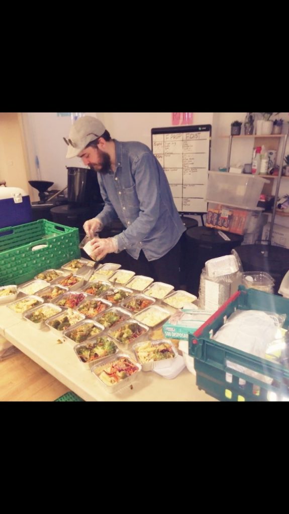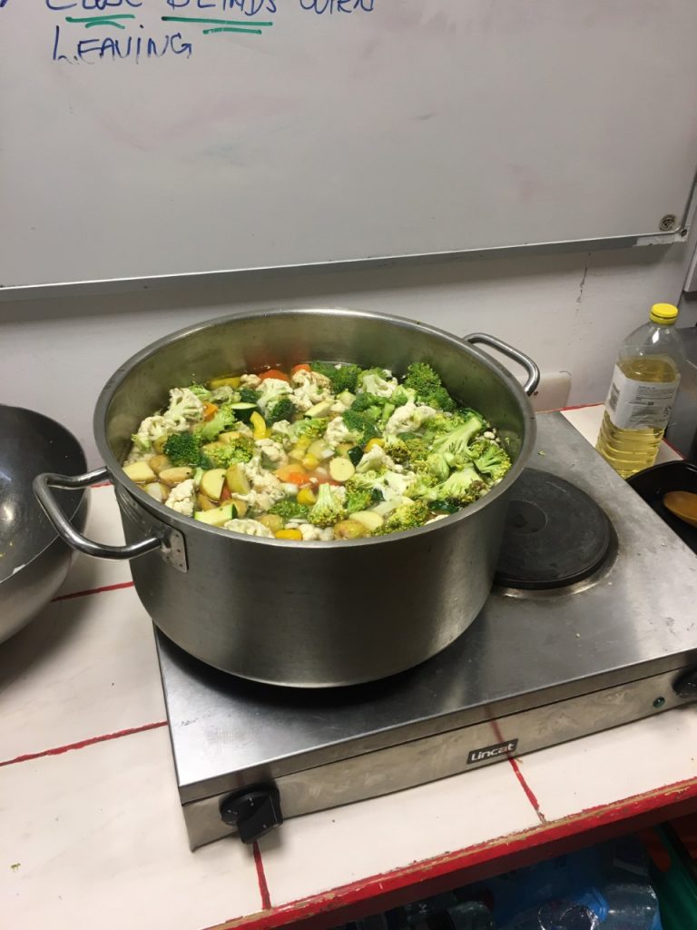 The working in the office are fast-paced and arduous. Each person have to spend an afternoon to cut vegetables, cook and pack 50-60 sandwiches, 35 portions of speghattis, 30 portions of roast, a big pot of vegetable soup and categorise food into vegan and non-vegan, and laborious dish washing. Then all the food will be delivered by a van to city centre to feed the public. One of my colleagus Dawn was an old lady, she collaborated with me to make sandwiches one day. She was suffered from the backade during the work due to long period of standing and leaning down on food table. She had moved to a ergonomic chair to continue her work. Dawn had served in kitchen for a year, “Many volunteers just served once in food preperation and move to street to do food distribution…..oh…”.