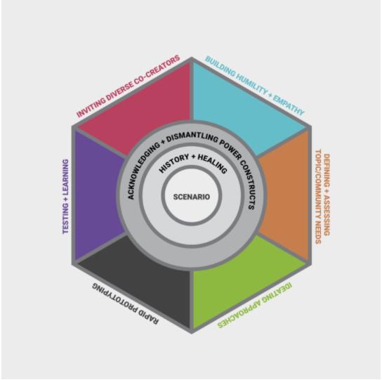“Because good intentions are not enough. We have to hold ourselves accountable to the impact that we are having in our lives and other lives in our communities. But understand that human centered approaches are not enough because un fortunately, a lot of human centered efforts look at community members as “users”, “beneficiaries” and “research subject”, opposed to being co-designers and co-workers.”
