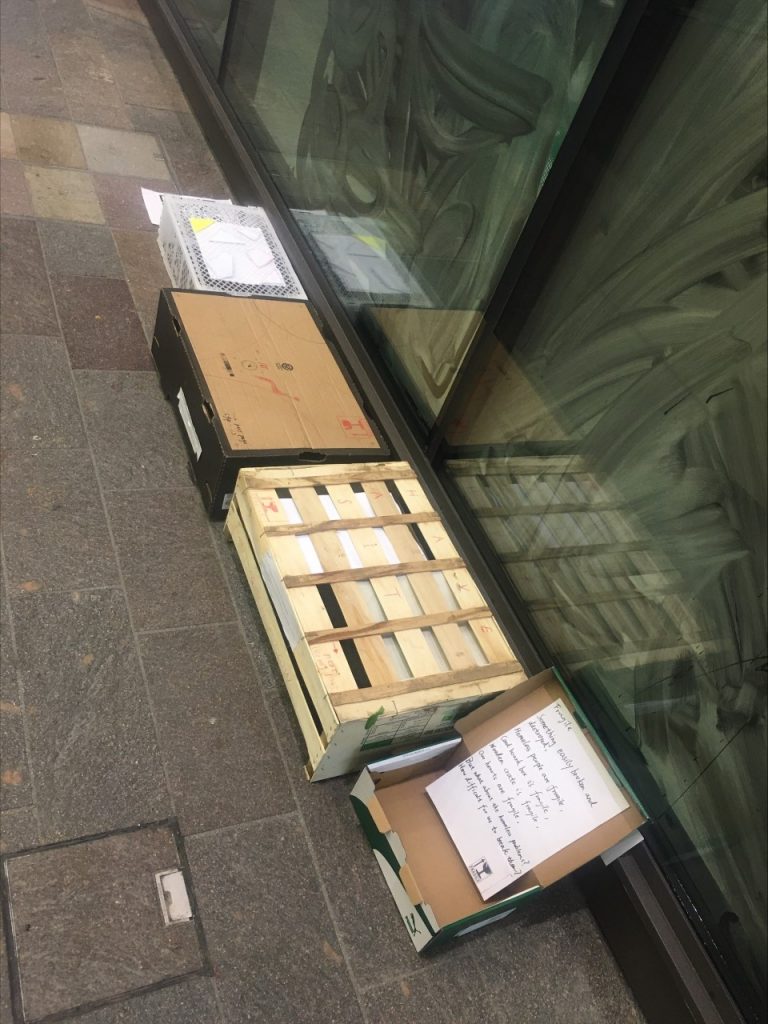 I also put a note book at the end site of crates for people to “write a letter to homeless people you don’t know”.