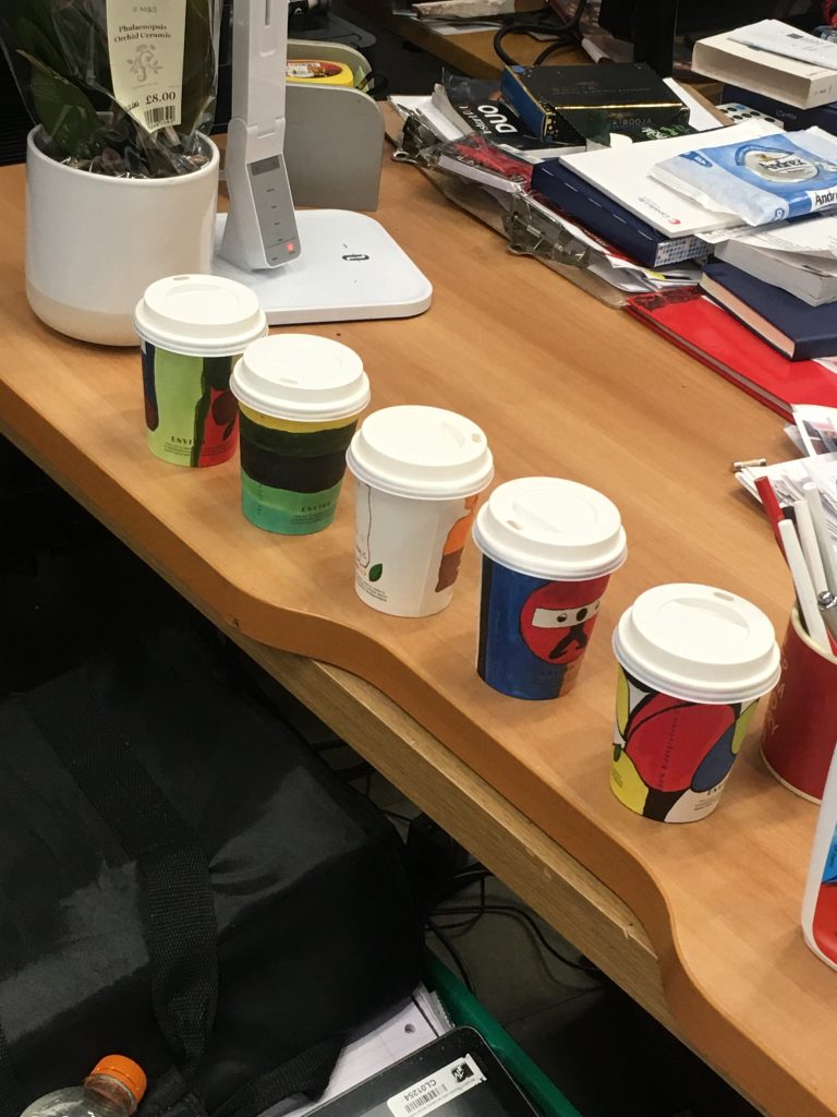 And, Inequality. Homeless problem is deteriorating because of inequality is rife. This keep remind me that the presentation of my artefact need to be as democratic as possible—a form that is accepted by most people. The “coffee cup” concept intervention is what I had developed in the early April—-which use coffee cup as a hook to allow homeless people to talk about their story by presenting the relationship between coffee and comfort zone. Coffee is one of the most democratic culture norm in western society, and it is important part of homeless people’s life(they all keep coffee cups with them for different usage). People’s respose to my coffee cup idea is very positive, most of them are so suprise to find that this way of communication. Therefore, I keep using this idea for developing the artefact.